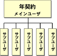 いずれの契約でも、1契約で、1つのメインユーザが与えられ、メインユーザは、複数のサブユーザを作成することができます。